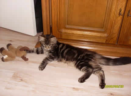 ................ Die 5.te Heimtiermesse am 31.Okt.2009, in Berlin brachte Chrush gegen 6 starke Konkurrenten erst im Stechen ein gutes V2.............Bei der nächsten Ausstellung startet Chrush dann in der offenen Klasse! Hier mit fast 2 Jahren !! Immerhin um die 8 Kg !!