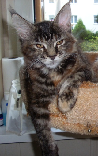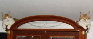 Betty und Bonny im neuen Heim im Alter von 5 Monaten , hier auf dem Schrank